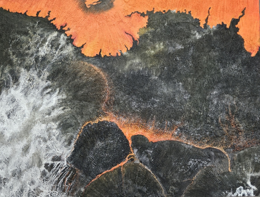 화산이 폭발하는 "분화" 작품은 요즘처럼 뜨거운 열기로 가득한 지구 환경에 경각심을 가지고 살며, 환경 보호의 작은 실천적 행동을 보여주려 했다. 작가는 감상자들이 작품을 보고 힐링 포인트를 찾아 마음의 정화를 갖는 계기가 되기를 바라는 마음으로 창작을 한다. 작은 꽃잎과 잎사귀 하나에도 여러 번 붓 칠을 하며 완성시켜 섬세함이 돋보인다. 살아있는 듯한 모습으로 그림이 다가와 공감력을 얻기 충분하다.