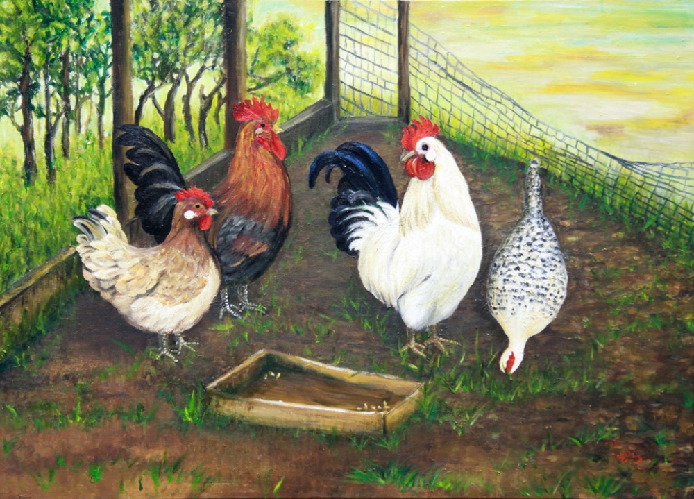 "소박한 대화" 작품은 어렵고 힘든 경제적 또는 사회적 분위기를 닭의 무리를 통해 원만해지기를 바라는 마음을 담았다. 무너진 울타리와 부족해 보이는 먹이의 모습을 우리들이 살아가는 시대적 배경으로 그렸지만 함께 극복하고 희망적 삶으로 나아가려는 의지의 메시지가 있다. 도약의 기회로 삼으려는 긍정적 사고를 닭들의 풍경으로 빗대어 관람객과 소통하려고 한다. 닭의 무리를 사실적으로 묘사하여 말하고자 하는 주제를 명확하게 구현해 진지함으로 빠져들게 한다.
