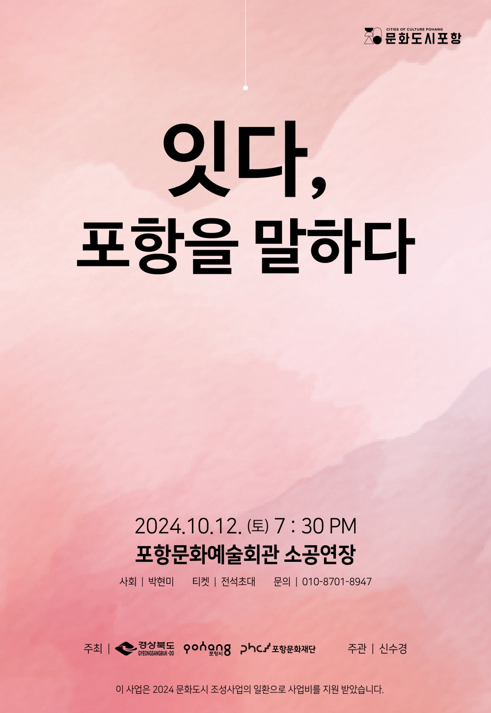 ‘잇다, 포항을 말하다’ 공연은 무료로 진행된다. 티켓 예매 등 기타 자세한 사항은 ‘잇다’로 전화 문의하면 된다.