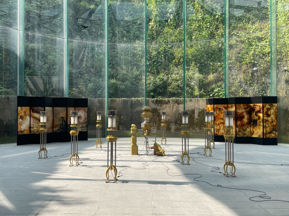 전시는 죽음에 대한 이야기로 시작해서 삶으로 나아갔다가 다시 죽음으로 순환하는 구조로 이뤄져 있어 삶과 죽음의 연결고리를 시각화한다. 전시장의 어두운 복도를 타고 올라가면 ‘삶’에 대한 이야기를 다루는 유리 파빌리온으로 이어진다.