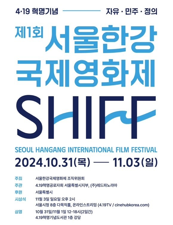 ‘4.19혁명 정신 잇는다’ 무료 상영 단편영화 만나는 ‘서울한강국제영화제’ 31일 개최 4.19혁명을 기념하는 제1회 서울한강국제영화제(SHIFF)가 이달 말 화려한 막을 연다. 10월 31일(목)부터 11월 3일(일)까지 4.19혁명기념도서관 1층 강당에서 진행하는 이번 영화제는 대한민국 민주주의 기틀을 세운 4.19혁명의 자유, 민주, 정의의 정신을 계승하고 확산시키기 위해 올해 처음으로 개최된다.