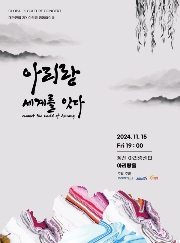 문화예술 콘텐츠 기업 (주)예술숲(대표 김면지) 이 대한민국 3대 아리랑 공동협의체(정선군, 진도군, 밀양시)의 주최로 11월 15일 금요일 오후 7시, 정선아리랑센터 아리랑홀에서 열리는 <아리랑 세계를 잇다> 공연소식을 전했다.