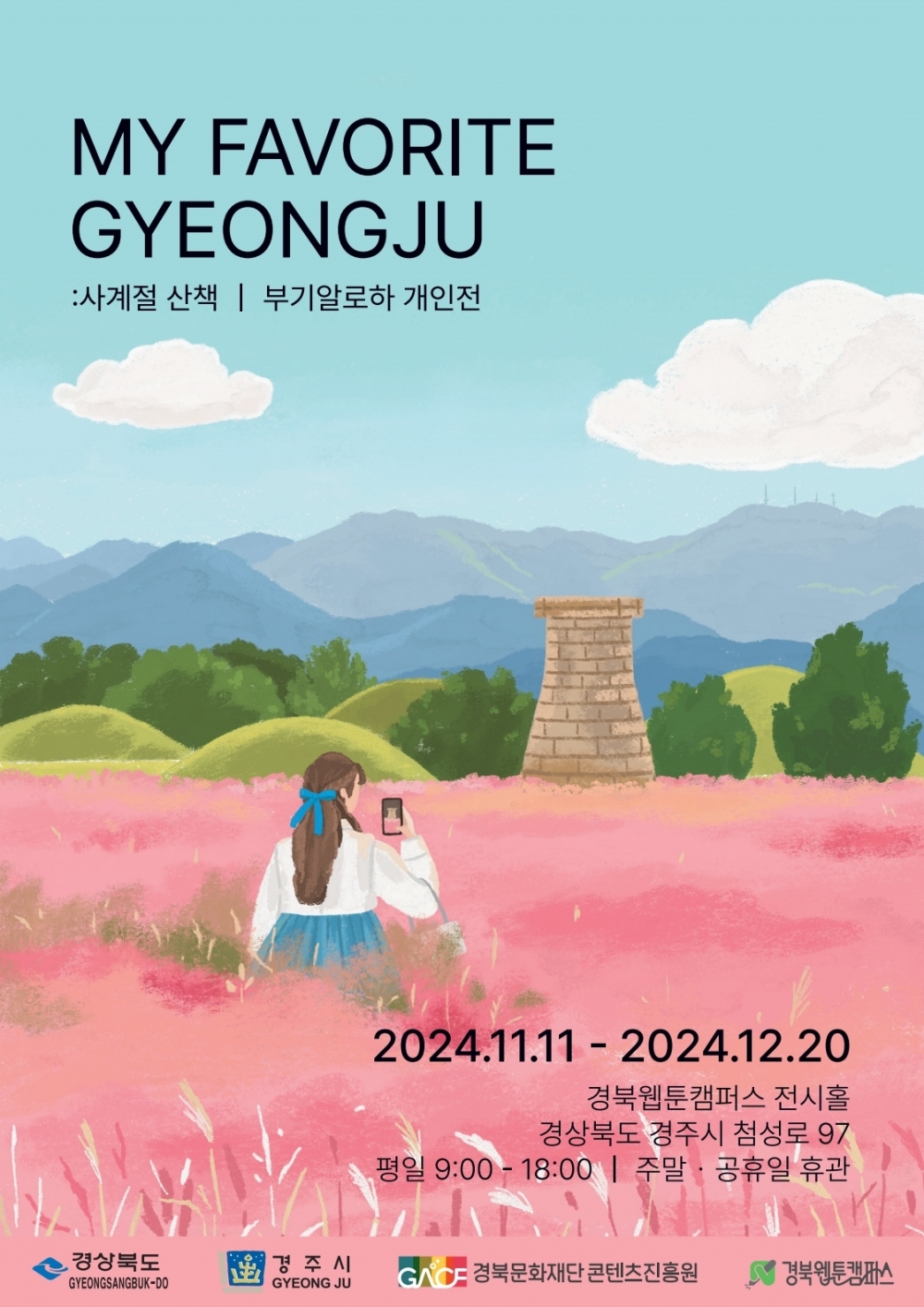 경북문화재단 콘텐츠진흥원(원장 이종수, 이하 진흥원)이 운영하는 경북웹툰캠퍼스(이하 캠퍼스)가 새달 20일까지 경주 황리단길에 위치한 캠퍼스 전시홀에서 ‘부기알로하’ 작가의 <MY FAVORITE GYEONGJU : 사계절 산책> 전시를 선보인다.