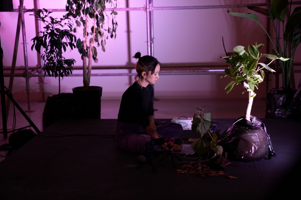 롤롤롤(lololol, 대만)은 식물 이파리에 부착한 심전도기로 발생한 파장을 재해석해 마치 영혼의 나무에 접신하는 네오샤먼이 돼 소통을 시도하는 퍼포먼스를 선보였다.