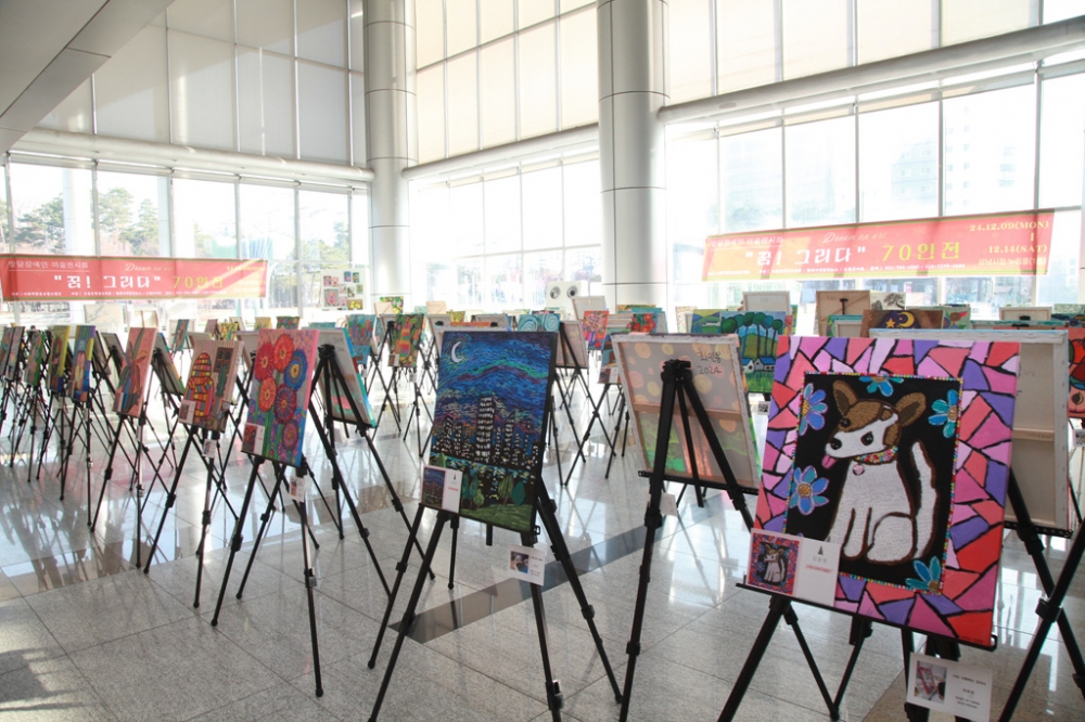 자신의 생각과 꿈을 창의적으로 표현한 그림으로 관람객과 공감과 소통을 진행 중인 발달장애인 미술전시회 "꿈! 그리다 70인전"이 2024년 12월 9일(월) ~ 12월 14일(토)까지 성남시청 누리홀에서 열리고 있다. 발달장애인에게 문화예술인으로 독립적 활동을 지원하기 위해 전문 교육을 실시하는 사회적협동조합 드리온 (대표 김서정)이 주최하여 미술교육을 받은 참가자들이 잠재된 예술성을 마음껏 발산할 수 있도록 했다.