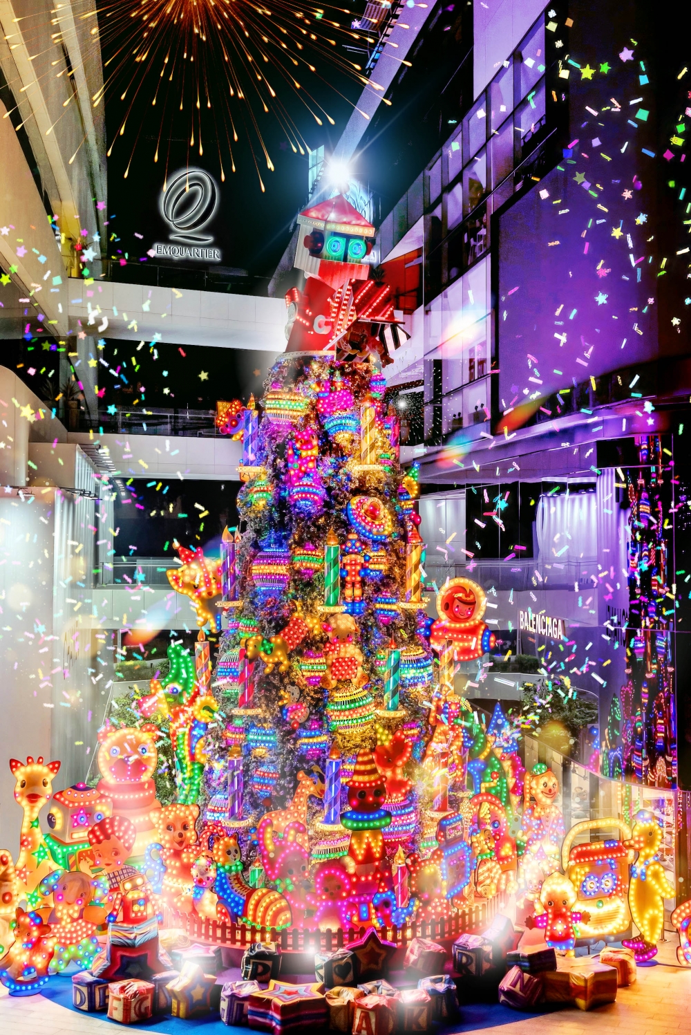 엠포리움 맞은편에 위치한 엠쿼티어는 상징적인 크리스마스 트리로 시선을 사로잡는다. 트리 주변으로는 젠틀몬스터(Gentle Monster), 오프화이트(Off-White), 자라(Zara) 등 하이 스트리트 패션 부티크가 늘어서 있다. 또한 미식 레스토랑에서는 풍성한 크리스마스 만찬부터 창의적인 퓨전 요리까지 다양한 진미를 제공한다. 연말 세일이 한창인 이곳은 쇼핑 애호가를 위한 천국이기도 하다.