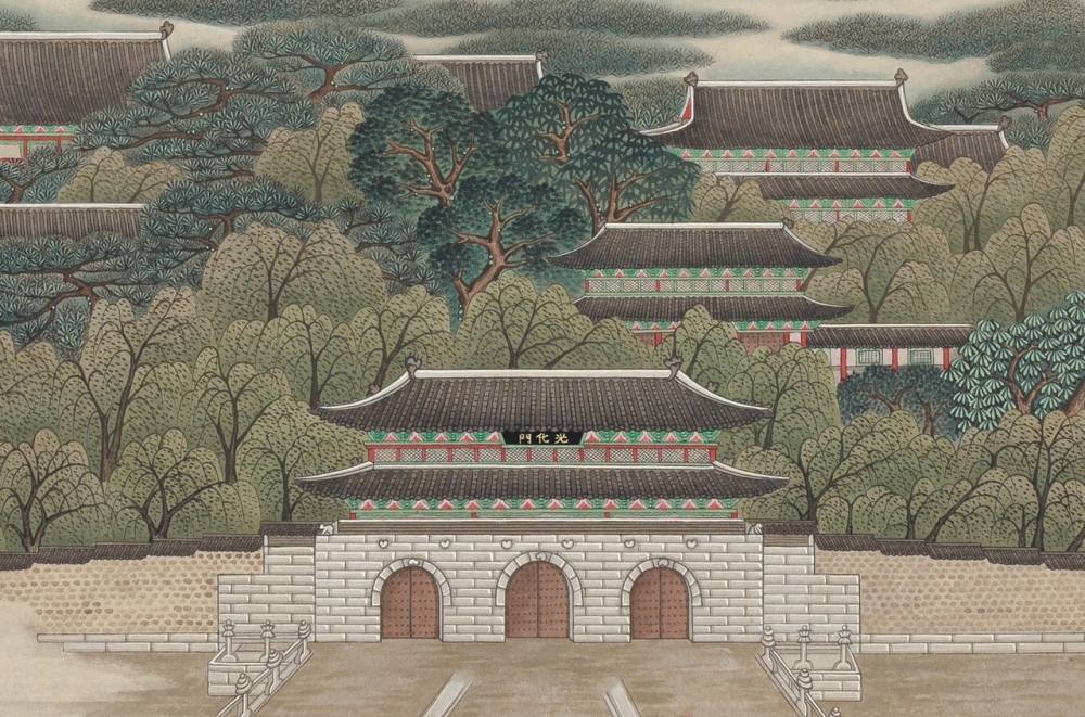 천진주 작가는"심전 선생님이 백악춘효도를 통해 보여주신 경복궁의 우아한 자태와 그 속에 담긴 애틋한 마음을 이어받아, 2023년에 복원된 광화문의 모습을 작품 속에 되살려 보고 싶었다. 일제의 훼손으로 원형이 크게 사라진 궁궐을 잊지 않으려던 그 마음을 오늘날에도 이어가자는 의미이기도 하다. 원작에는 비어 있던 광화문 현판을, 복원 기록인 ‘경복궁영건일기’를 참고해 검정 바탕에 금색 글자로 완성했는데, 하늘에 계실 심전 선생님께서 이를 보신다면 얼마나 기뻐하실지 생각하며 작업했다”고 말했다.