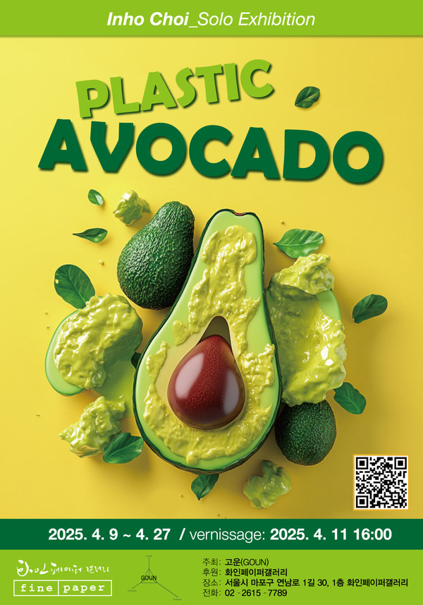전시기획사 고운(대표 최고운)는 4월 9일(수)부터 4월 27일(목)까지 마포구 연남동에 위치한 화인페이퍼갤러리(대표 안상순)에서 '예술의 본질적인 가치'를 주제로 독일 출신 최인호(b. 1985~)작가의 국내 첫 대규모 개인전 'Plastic Avocado'를 개최하고 그의 신작 60여점을 선보인다고 오늘(1일) 밝혔다.