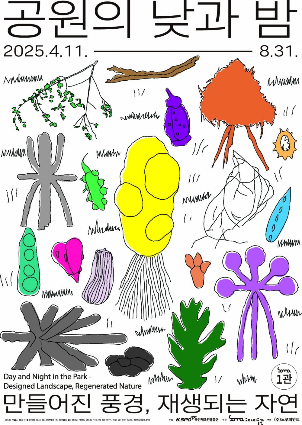 국민체육진흥공단(이사장 하형주) 소마미술관(관장 차차남)은 2025년 4월 11일부터 8월 31일까지 ‘공원의 낮과 밤 - 만들어진 풍경, 재생되는 자연’전을 개최한다. 이 전시는 소마미술관 최초 올림픽공원의 생태적 환경을 주제로 한 전시로, 강현아, 권다예, 나점수, 박문희, 소수빈, 송미리내, 정재희, 홍이카 8명의 드로잉, 회화, 입체, 사진, 영상 등 200여점을 선보인다.