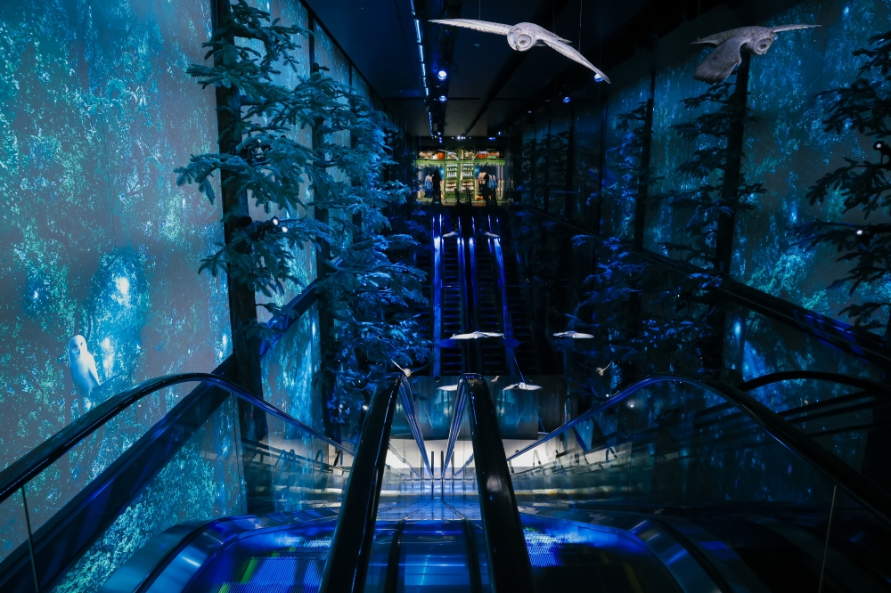 안에 들어서면 가장 먼저 눈에 들어오는 것은 거대한 나무와 부엉이들이다. 매장 안 우뚝 솟은 나무 사이로 유유히 날아다니거나 무성한 녹색 가지 위에서 날개를 쉬는 부엉이들의 모습이 펼쳐진다. 또한 나무줄기 위에는 다양한 마법 동물들도 자리하고 있어 방문객들은 마법 세계를 한눈에 체험할 수 있다.