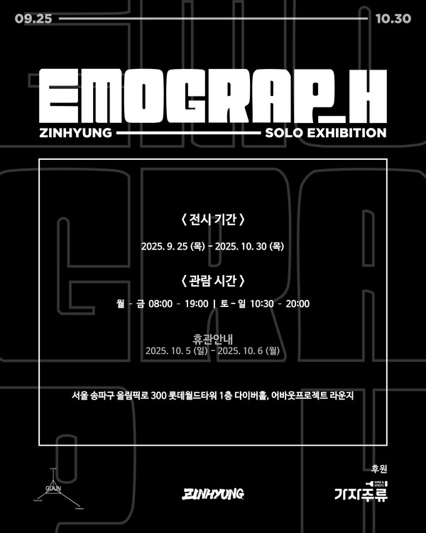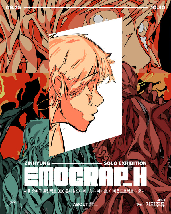 전시기획사 고운(대표 최고운)은 오는 9월 25일(목)부터 10월 30일(목)까지 서울 송파구 롯데월드타워 1층 어바웃 프로젝트라운지에서 신진 작가 진형(b.1996~)의 신작 약 15점을 선보이는 기획전 《Emograph : 감정을 시각화하다》를 개최한다고 15일에 밝혔다.