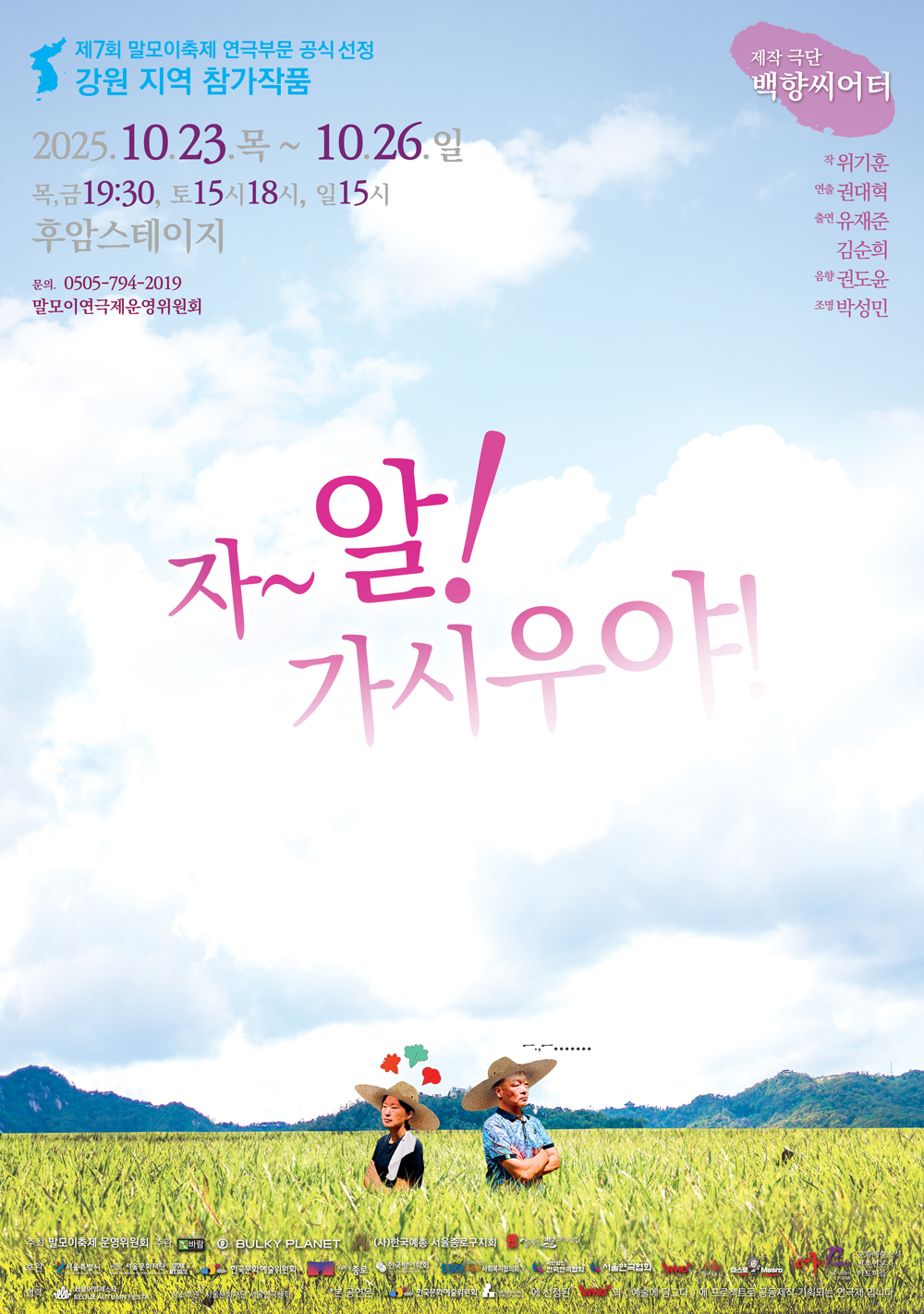 연극“자~알 가시우야” 는 작 위기훈 / 연출 권대혁 / 출연 유재준,김순희,/음향 디자인 권도윤 / 제작 극단 백향씨어터 이다.