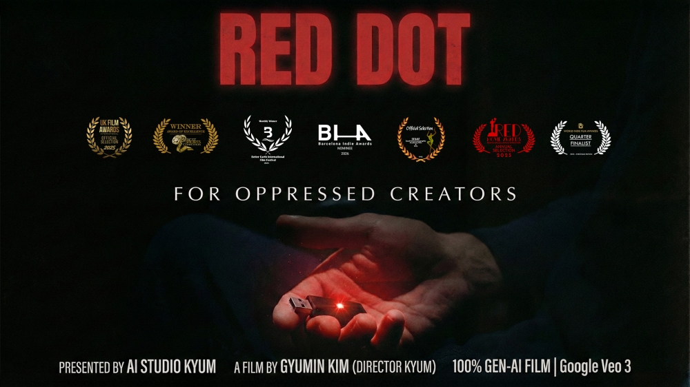 이번 수상은 단순한 해외 영화제 수상을 넘어 국내 AI 영화가 국제무대에서 기술적 성취뿐 아니라 작품성, 주제의식, 연출력으로 평가받았다는 점에서 의미가 크다. 특히 ‘RED DOT’은 검열과 감시, 표현의 자유 침해, 그리고 영화 만들기 자체가 저항이 되는 억압된 사회 배경을 다루며, AI를 단순 제작 효율화 도구가 아니라 창작자의 발화를 확장하는 영화적 수단으로 제시한다.