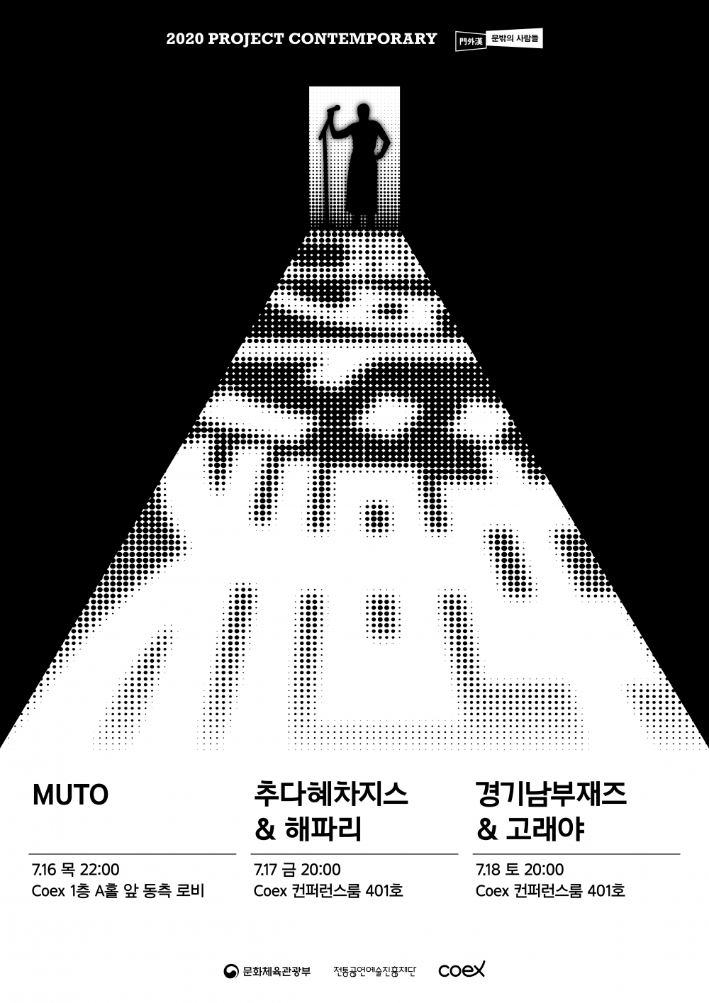 전통공연예술진흥재단(이사장 정성숙)이 프로젝트 컨템퍼러리 ‘문밖의 사람들 : 門外漢’ 공연을 7월 16일(목)부터 7월 18일(토)까지 서울 삼성동 코엑스 일대에서 개최한다.