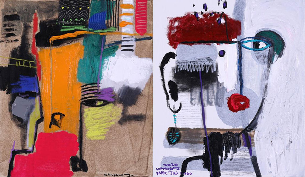 빛나는 과거는 흑백이 아니라 화려한 원색으로 달짝지근함이 피어오르는 양파 향이거나 소금기 머금은 바다 내음을 안고 있다. 서양화가 박진우는 모딜리아니의 화창(畵窓)에서 동화를 퍼 올리는 원색의 공방에서 조형의 검투사를 자처해왔다. 조건을 가리지 않고, 치러낸 화쟁(畵爭)의 소부대 전투에서 다양한 재료가 건반의 조율처럼 사용되었다. 건반의 조화가 낳은 음파의 진통 같은 시각적 이미지는 다양한 상상을 동반하고 나타난다. 그림 속 투박한 질감의 부드러운 서정은 과거로의 동행을 권하고 공감대를 형성하지만, 자신만의 비밀이 숨어 있음이다.