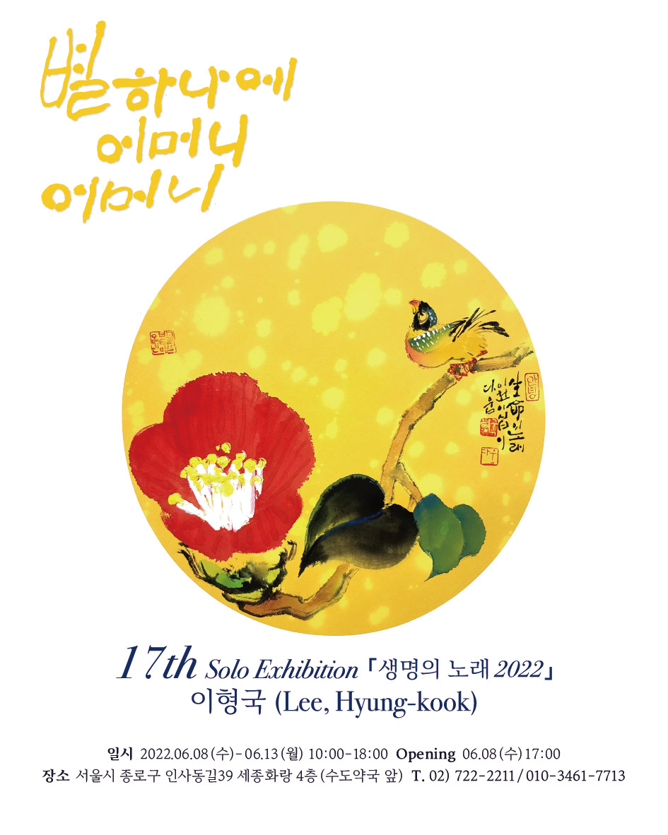 개인전 ‘생명의 노래’의 하나로 진행되는 별 하나에 어머니 어머니는 이형국 작가가 내년 5월 구순(九旬)을 맞는 어머니에게 1년 앞서 헌정하는 전시회다. 생명의 노래는 이 작가가 2003년부터 진행하고 있는 개인전 연작으로, 올해만 두 차례 진행될 만큼 좋은 반응을 얻고 있다.
