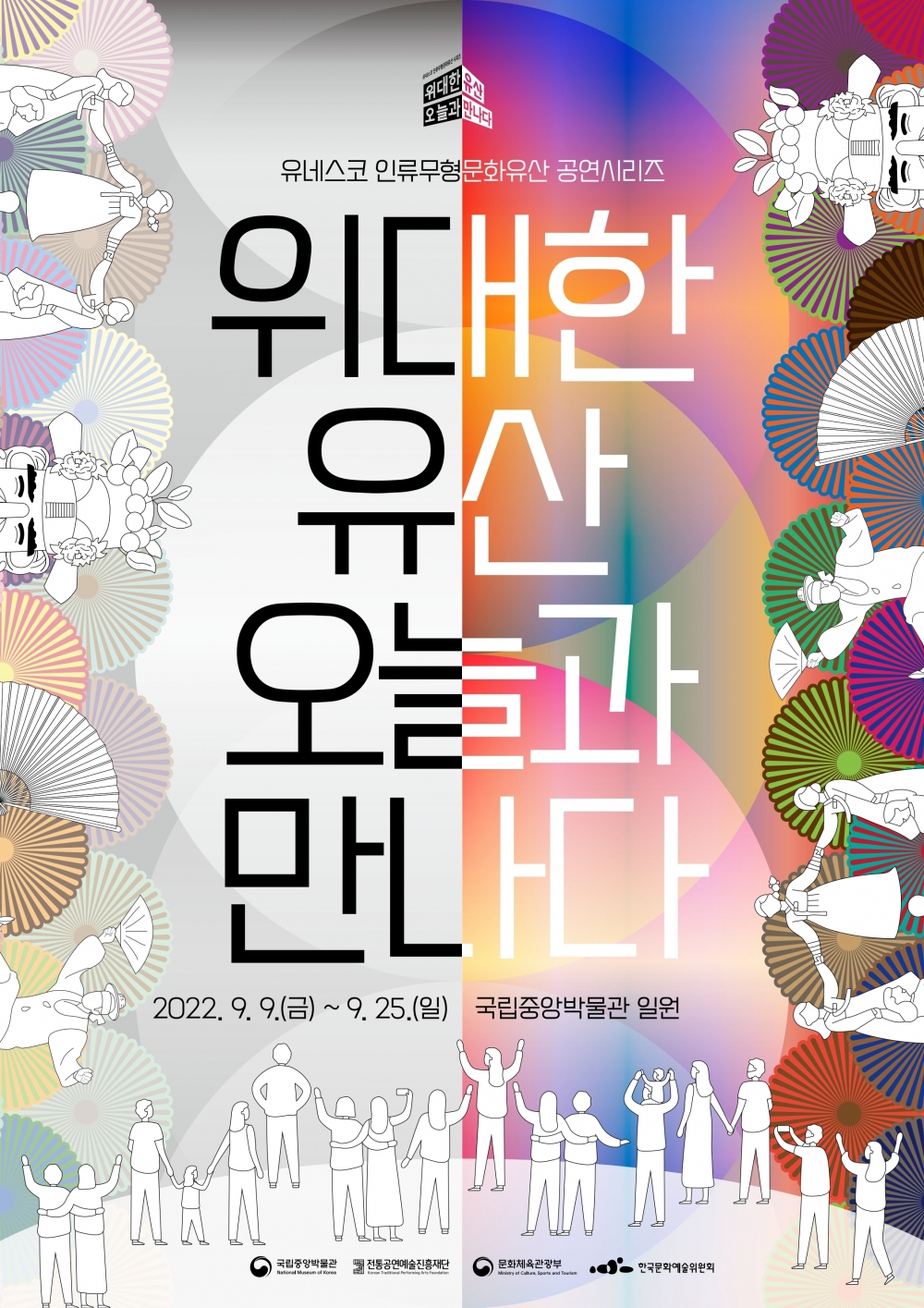 전통공연예술진흥재단(이사장 김삼진)과 국립중앙박물관(관장 윤성용)은 2022 유네스코 인류무형문화유산 공연시리즈 ‘위대한 유산, 오늘과 만나다’를 9월 9일(금)부터 9월 25일(일)까지 국립중앙박물관에서 개최한다.