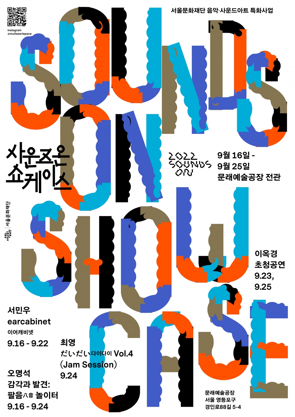 서울문화재단 ( 대표이사 이창기 ) 은 동시대 사운드 아티스트들의 독창적인 작품을 만날 수 있는 < 사운즈 온 (Sounds On) 쇼케이스 >( 이하 사운즈 온 ) 를 오는 16 일 ( 금 ) 부터 25 일 ( 일 ) 까지 문래예술공장에서 개최한다 . < 사운즈 온 > 은 실험음악과 사운드아트 분야의 연구와 공연을 지원하는 특화 사업으로 이번 쇼케이스에서는 작년에 작품개발연구 지원을 받은 20 명의 예술가 중 선정된 3 명의 작품을 확인 할 수 있다 .