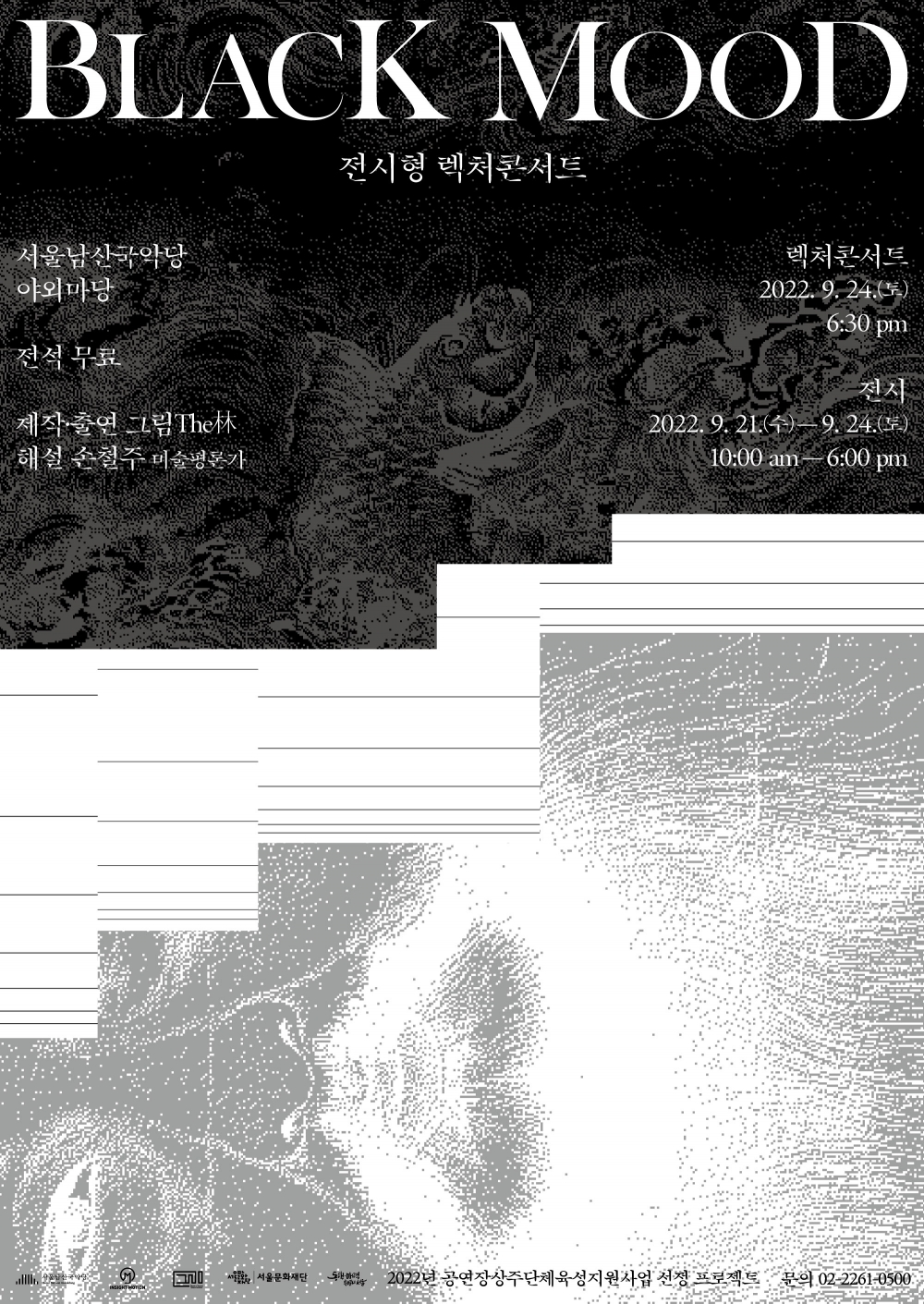 서울문화재단 공연장상주단체육성지원사업으로 선정된 창작국악그룹 그림The林과 서울남산국악당은 9월 21일(수)부터 9월 24일(토)까지 서울남산국악당 야외마당에서 전시형 렉처콘서트 ‘Black Mood’로 서울 시민들을 만날 예정이다.