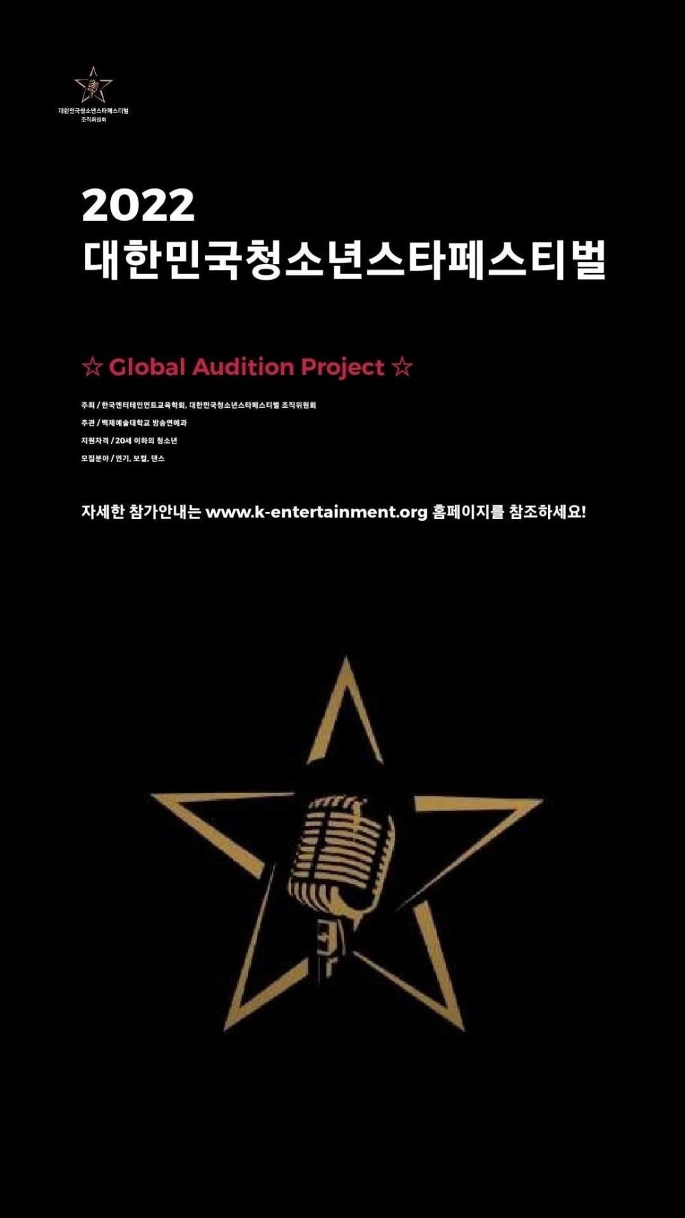 한국엔터테인먼트교육학회와 대한민국청소년스타페스티벌 조직위원회가 공동 주최하고, 백제예술대학교 방송연예과가 주관하는 이번 대회는 올해로 3년째 개최되고 있는 글로벌 오디션이다.