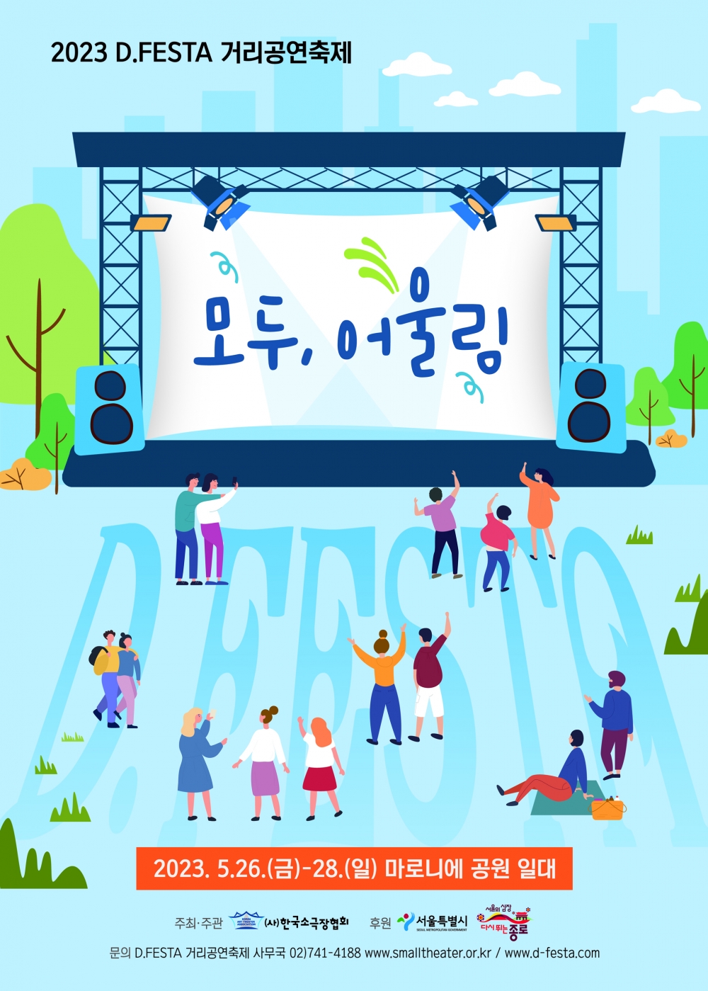 대학로거리공연축제 ‘2023 D.FESTA’가 2023년 5월 26일부터 5월 28일까지 대학로 마로니에공원에서 (사)한국소극장협회(이사장 임정혁) 주최로 열린다. ‘2023 D.FESTA’ 는‘모두, 어울림’이라는 주제로 준비한 이번 축제는 3편의 공동제작공연, 11편의 초청공연을 준비하고 있다.