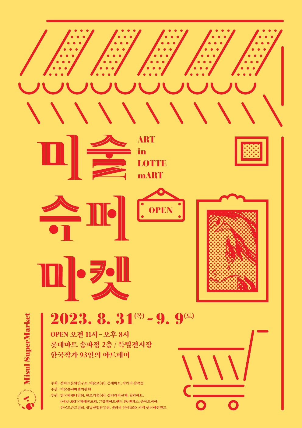 미술품 관리 스타트업 미술로(대표 조석진)는 9월 9일까지 롯데마트 송파점 특별 전시장에서 열리는 미술슈퍼마켓 행사를 통해 93명의 작가들이 참여하는 300여 점의 미술품을 전시 및 판매 한다고 밝혔다.