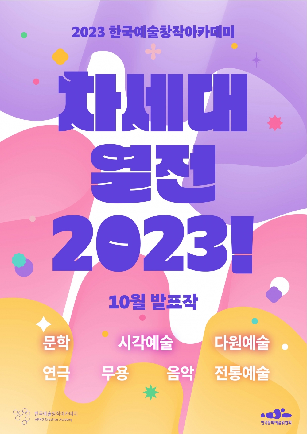 한국문화예술위원회(위원장 정병국, 이하 예술위원회)의 대표적인 차세대 예술가 지원사업인 ‘한국예술창작아카데미’가 <차세대열전 2023!>을 개최한다.