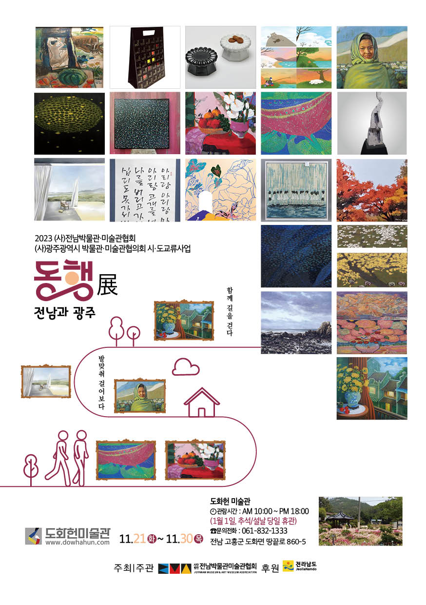 전남박물관·미술관협회가 전남과 광주의 문화 교류 및 문화 예술 발전 도모를 위해 2023 전남박물관·미술관협회 시·도 교류전시 ‘동행 展-전남과 광주’를 주제로 전시를 개최한다.