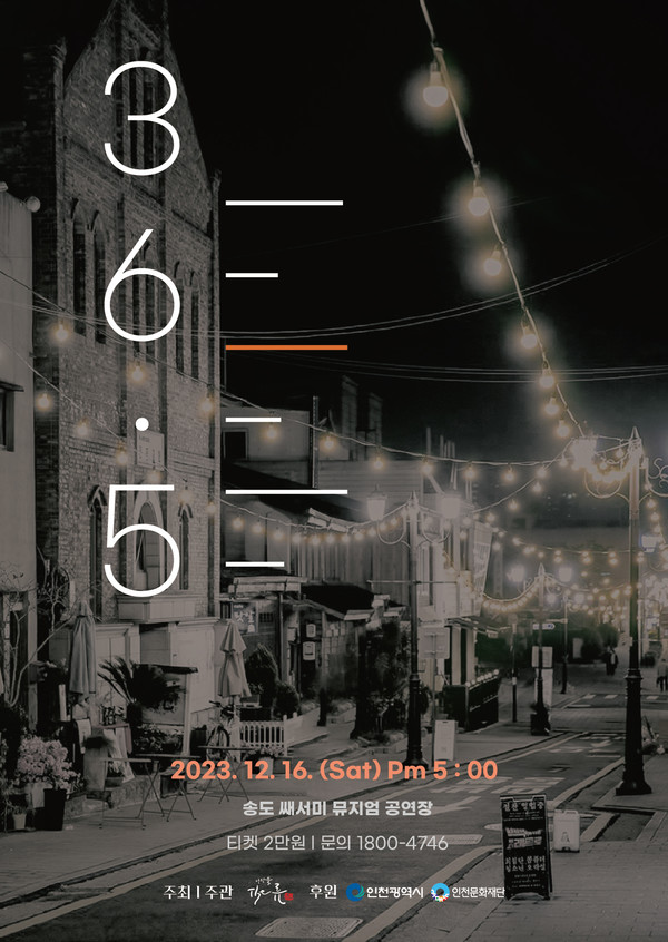 인천을 바라보는 따뜻한 온도와 시선을 담은 공연 <36.5>는 인천광역시와 인천문화재단이 후원하며, 오는 12월 16일 오후5시 송도에 위치한 쎄서미 뮤지엄 공연장에서 열린다.