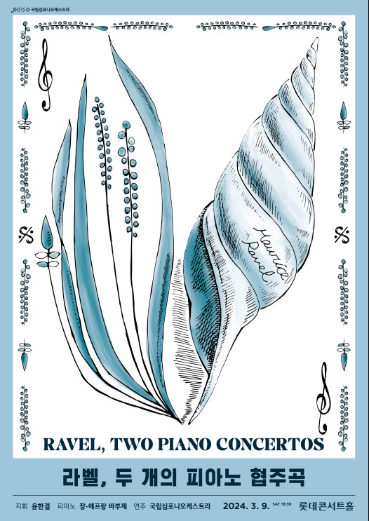 또 국립심포니는 클래식 음악의 새로운 감상 지평을 열고자 미술 작가와의 협업을 진행하고 있다. 이번 포스터 작업에는 그래픽 디자인과 레터프레스 작업을 이어온 툴프레스가 참여했다. 라벨의 음악에서 느껴지는 특유의 리듬감과 음향적 신비로움을 구슬과 소라의 이미지로 구현했다.