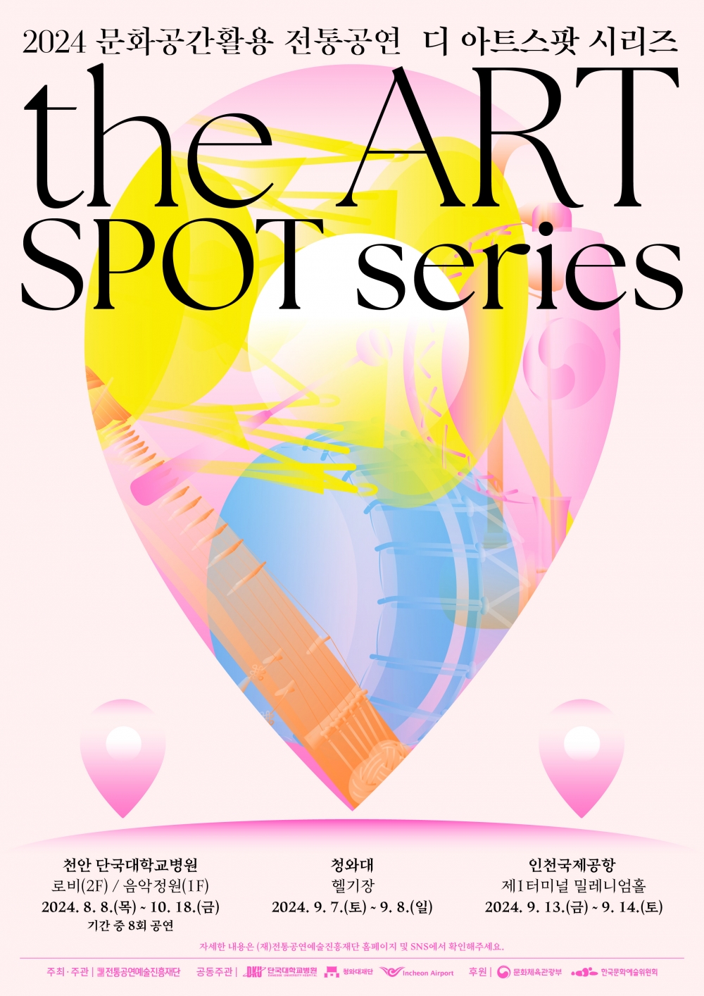 ‘디 아트스팟 시리즈’는 다양한 공간에서 국악에 새로운 감각을 더한 공연을 선보이며 전통예술의 매력을 드러내는 공연이다. 올해는 단국대학교병원, 청와대, 인천국제공항과 같이 다양한 일상의 공간을 무대로 삼아 관객들을 찾아간다. 공연은 8월 단국대학교병원의 공연을 시작으로 9월 청와대와 인천국제공항으로 이어진다.