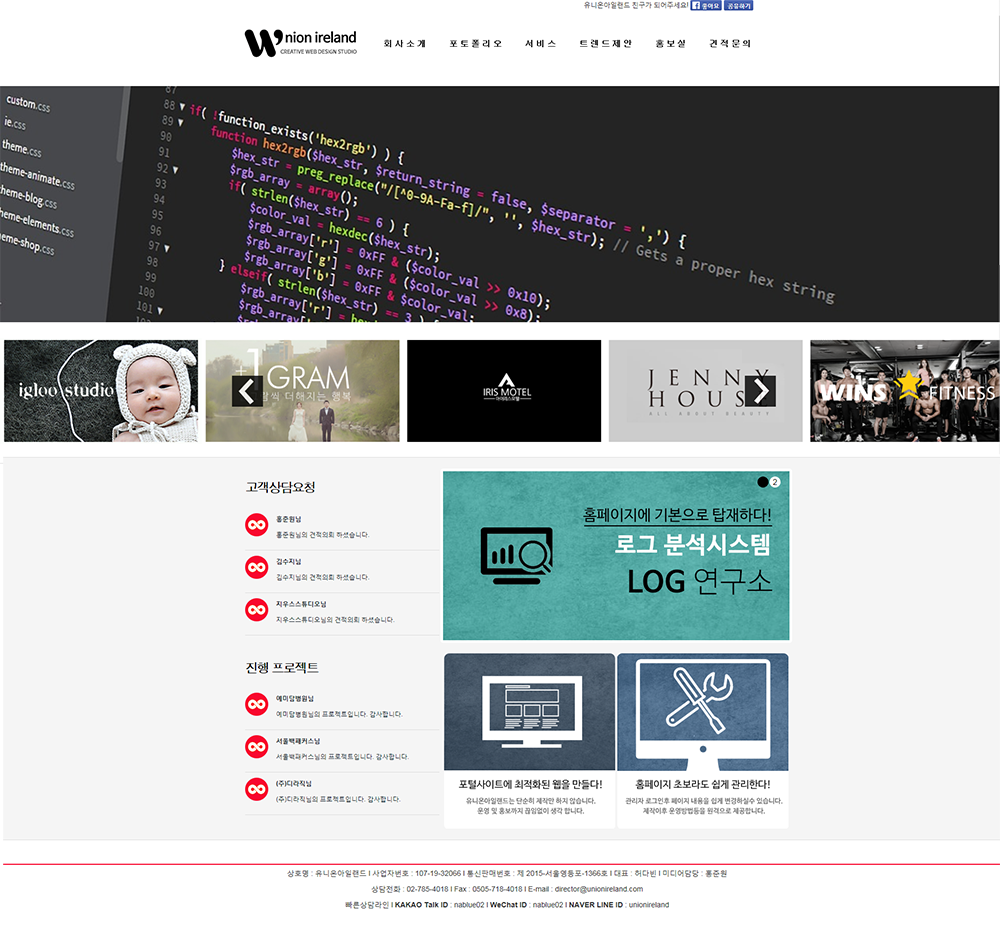 자세한문의는 홈페이지 제작업체인 유니온아일랜드 홈페이지(http://www.unionireland.com) 혹은 02-785-4018로 문의하기 바란다.