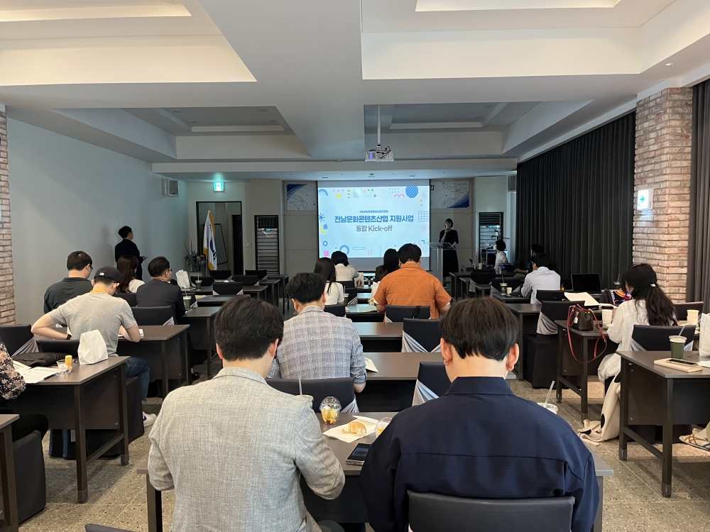 (재)전남정보문화산업진흥원(원장 이인용, 이하 진흥원)은 지난달 30~31일 양일간 담양 드몽드호텔에서 ‘2024년 전남 문화콘텐츠산업 지원사업 통합 킥오프’ 행사를 성공적으로 개최했다고 5일 밝혔다.