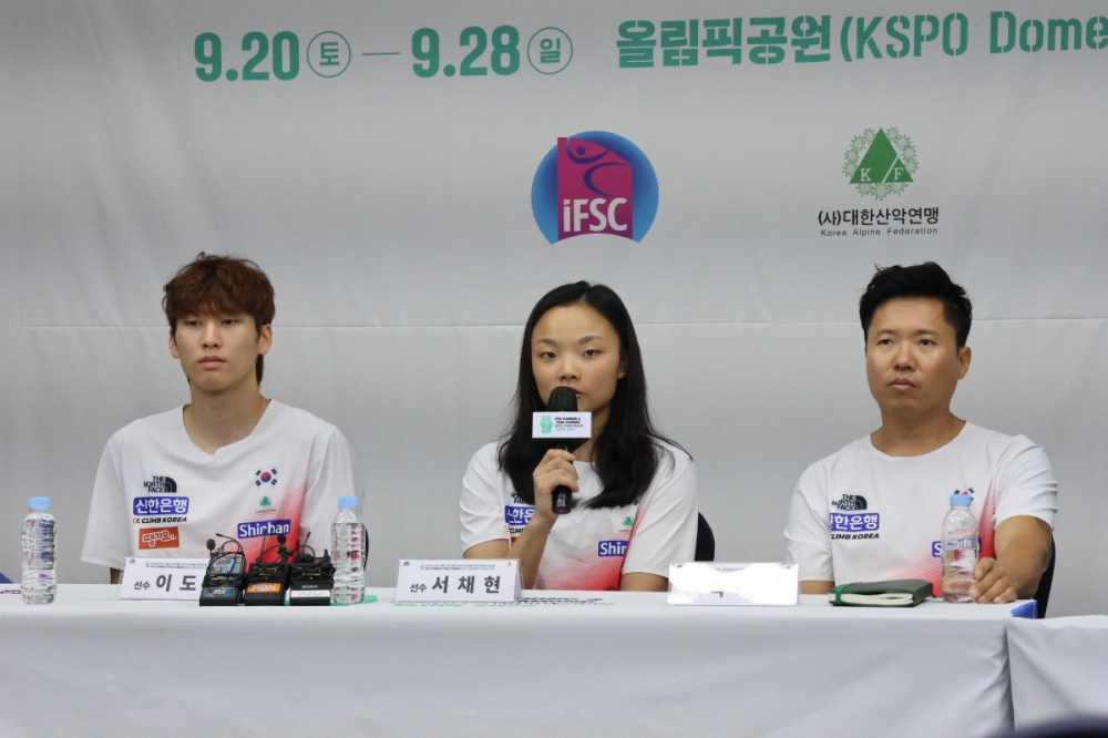 이날 프레스 컨퍼런스에 이번 대회에 출전하는 클라이밍의 레전드 김자인, 서채현, 이도현, 정지민 선수가 참석해 대회를 앞둔 각오와 훈련 과정을 전했다. 파라클라이밍 국가대표로 선발된 조해성 선수와 스포츠클라이밍 박희용 감독, 파라클라이밍 서종국 감독도 함께해 대회의 의미를 나눴다.