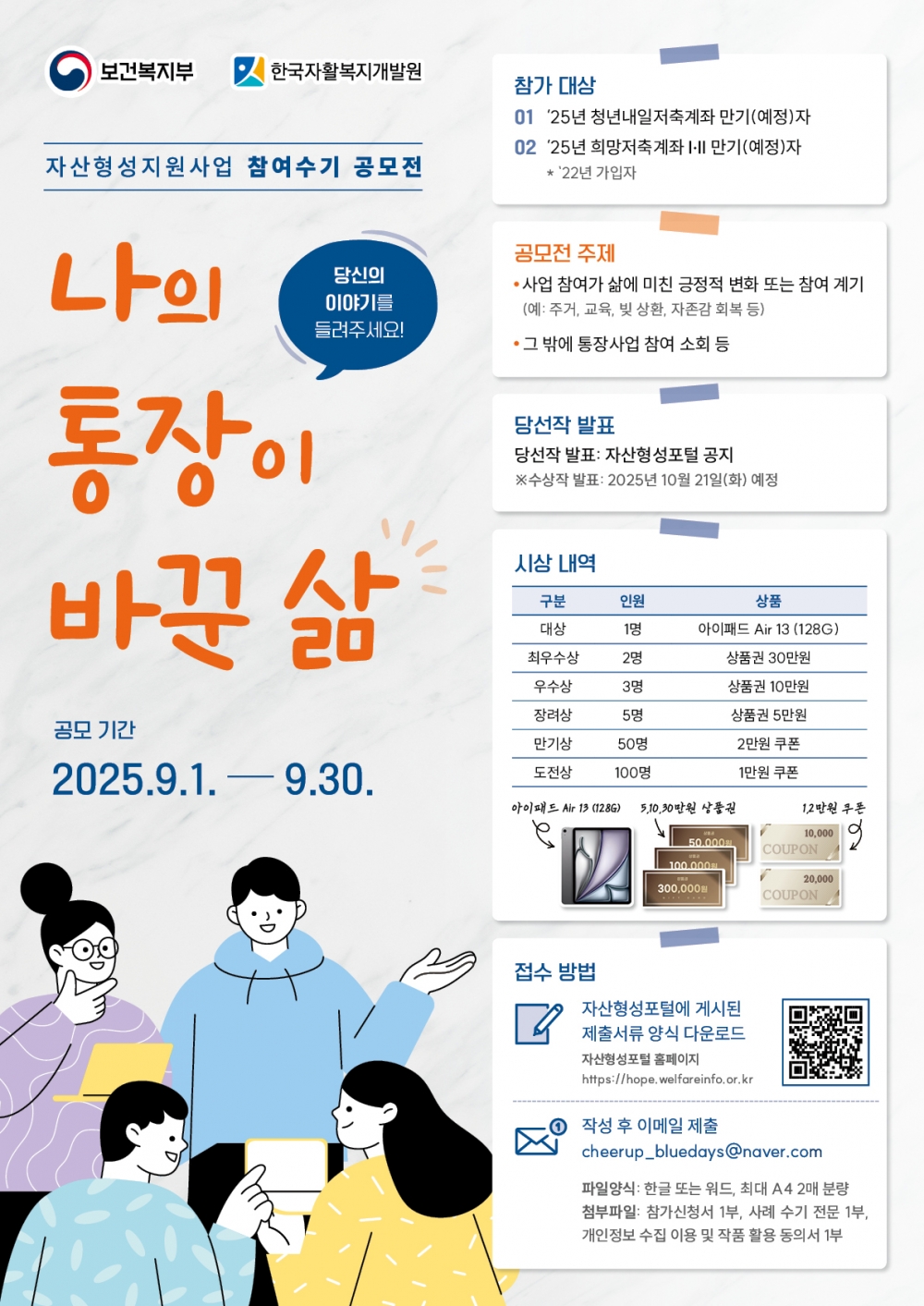 특히 이번 공모전은 단순한 저축 지원을 넘어 주거 안정, 교육비 마련, 빚 상환, 자립 기반 조성 등 실질적인 변화를 이끌어낸 사례를 국민에게 생생하게 전하는 계기가 될 것으로 기대된다.