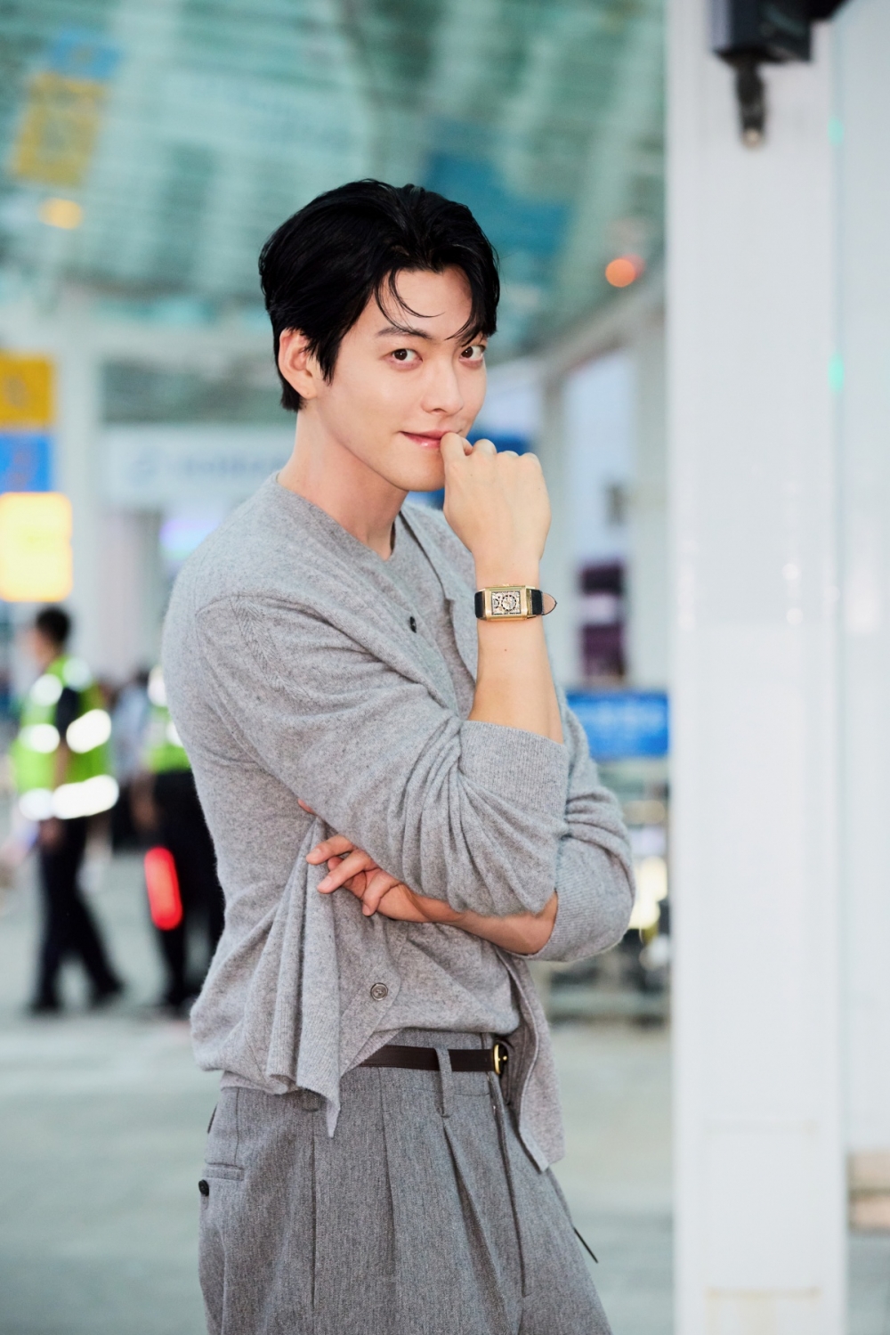 이날 김우빈은 스위스 파인 워치메이킹 브랜드 예거 르쿨트르의 <Dream Shaper> 전시 참석을 위해 출국길에 나섰으며, 멀리서도 돋보이는 세련된 비주얼은 물론 특유의 부드러운 카리스마와 댄디한 공항 패션을 선보여 시선을 사로잡았다. 또한, 우아하면서도 모던한 실루엣의 손목시계를 매치해 은은한 럭셔리 무드를 완성했다.