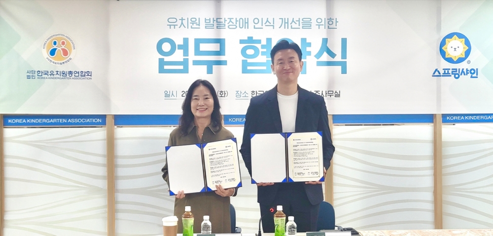 스프링샤인 사회적협동조합(대표 김종수)이 한국유치원총연합회(이사장 신미숙)와 지난 9일 한국유치원총연합회 주사무실에서 업무협약을 체결했다.