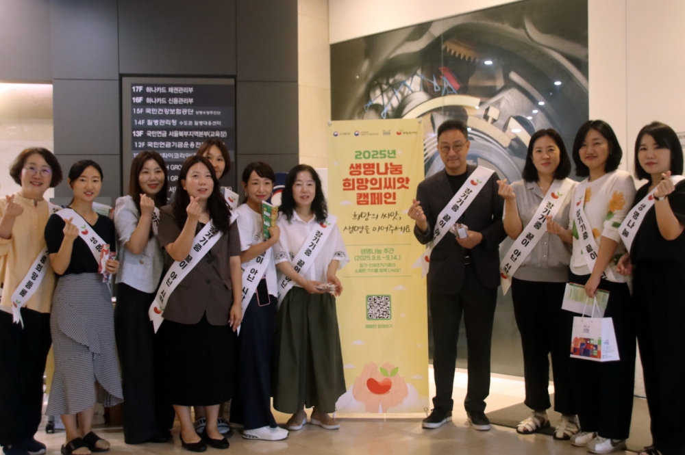 또한, 지난 9일에는 한국장기조직기증원 본사가 위치한 서울 서대문구 국민연금공단 충정로사옥 로비 및 인근에서 생명나눔 주간 알리기 출근길 캠페인을 펼쳤다. 이 행사는 생명나눔의 상징인 ‘희망의씨앗’으로 장기·인체조직기증을 알리는 ‘생명나눔 희망의씨앗 캠페인’의 일환으로 시행됐다.