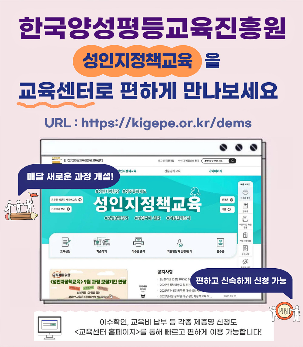 한국양성평등교육진흥원 관계자는 “사회 전반의 성평등 가치 공감대를 형성하기 위해 매월 실제 업무에 활용할 수 있는 다양한 교육을 구성해 제공하고 있다”며, “이번 교육을 통해 공무원과 정책 관계자들의 성인지 역량을 강화하며, 모든 국민이 체감할 수 있는 성평등 정책 실현에 기여하길 기대한다”고 전했다.