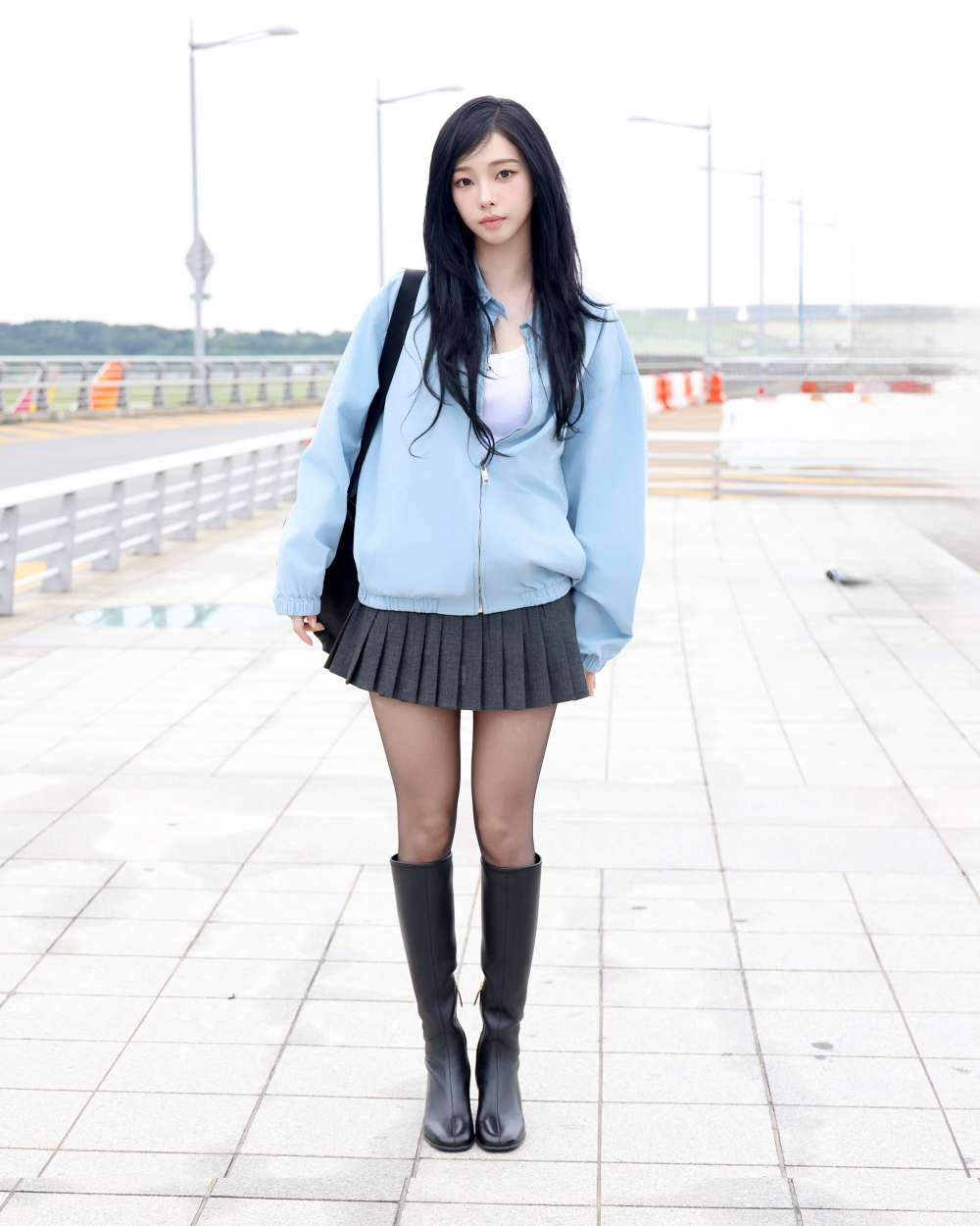 이날 카리나가 착용한 제품은 모두 프라다(PRADA) 제품으로 미니멀한 실루엣이 돋보이는 개버딘 블루종 재킷에 슬림핏 탱크 탑과 플리츠 미니스커트를 착용해 러블리하면서도 캐주얼한 스타일링을 연출했다.