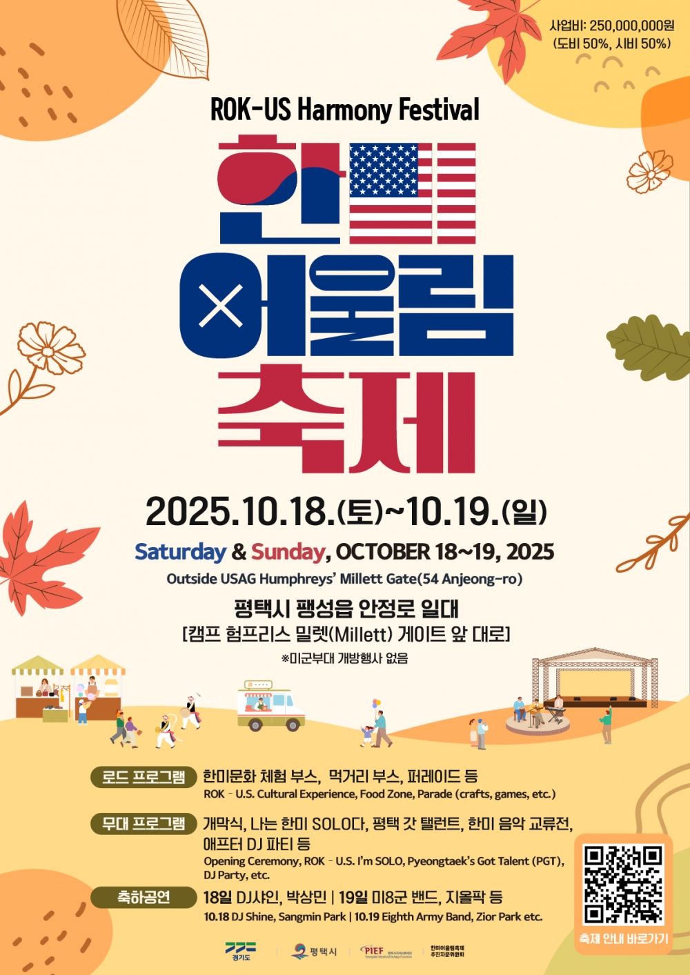 경기도와 평택시가 주최하고 평택시국제교류재단이 주관하는 ‘2025 한미 어울림 축제’가 오는 10월 18일(토)부터 19일(일)까지 양일간 개최된다.