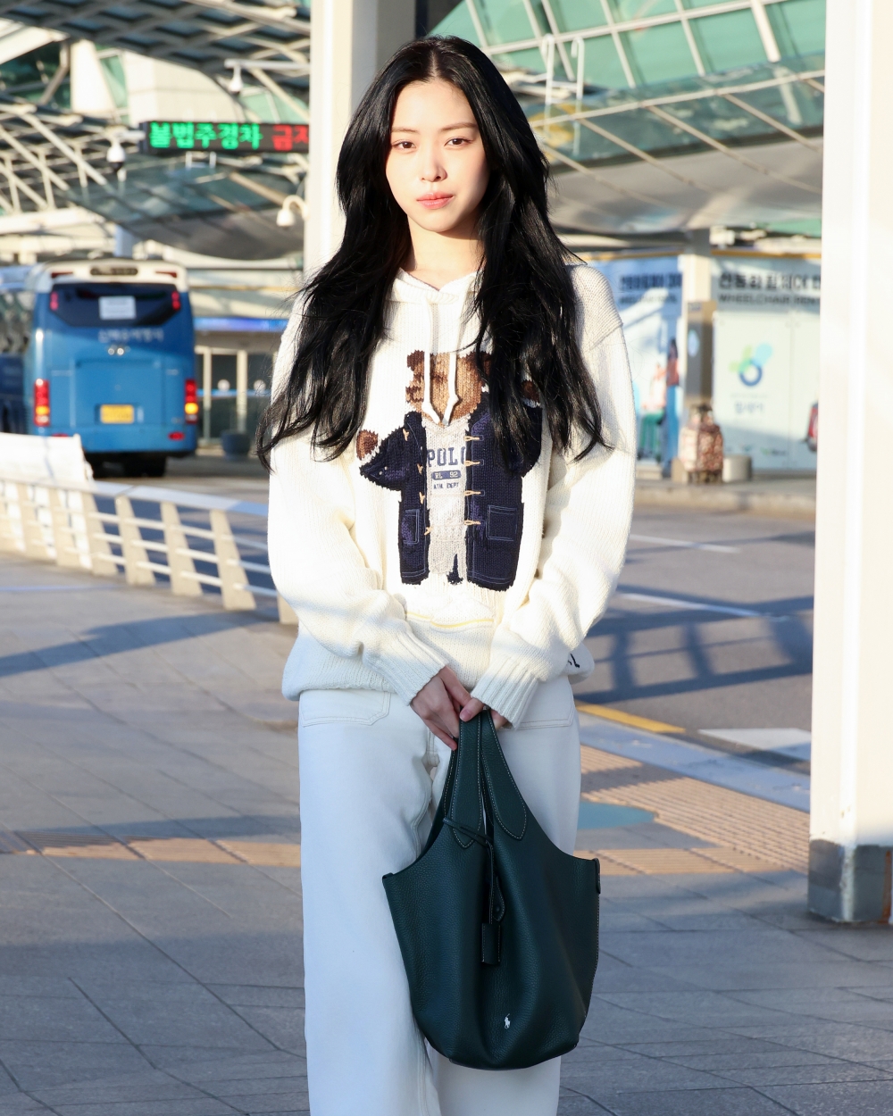류진이 착용한 의상은 모두 ‘폴로 랄프 로렌(Polo Ralph Lauren)’ 제품으로, 빈티지 스타일의 폴로 베어 디테일이 돋보이는 코튼 리넨 니트 후디와 깔끔한 화이트 컬러의 와이드 레그 치노 팬츠를 착용해 캐주얼하면서도 편안한 공항패션을 선보였다.