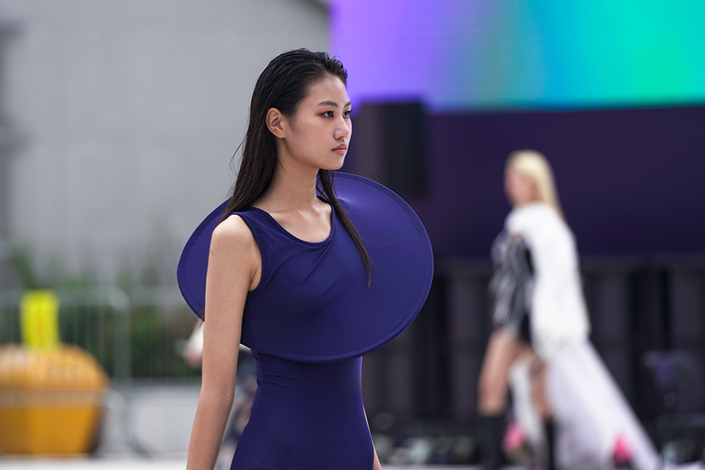 지난해는 물론 올해 개최된 제3회 캣워크 페스타에서도 활약한 ‘자개’는 퍼포먼스 팀과 함께 기후 메시지를 감각적인 비주얼 언어로 전환, 실루엣의 해체와 재조합을 통해 새로운 패션 형태를 선보이며 현장 관객의 시선을 사로잡았다.