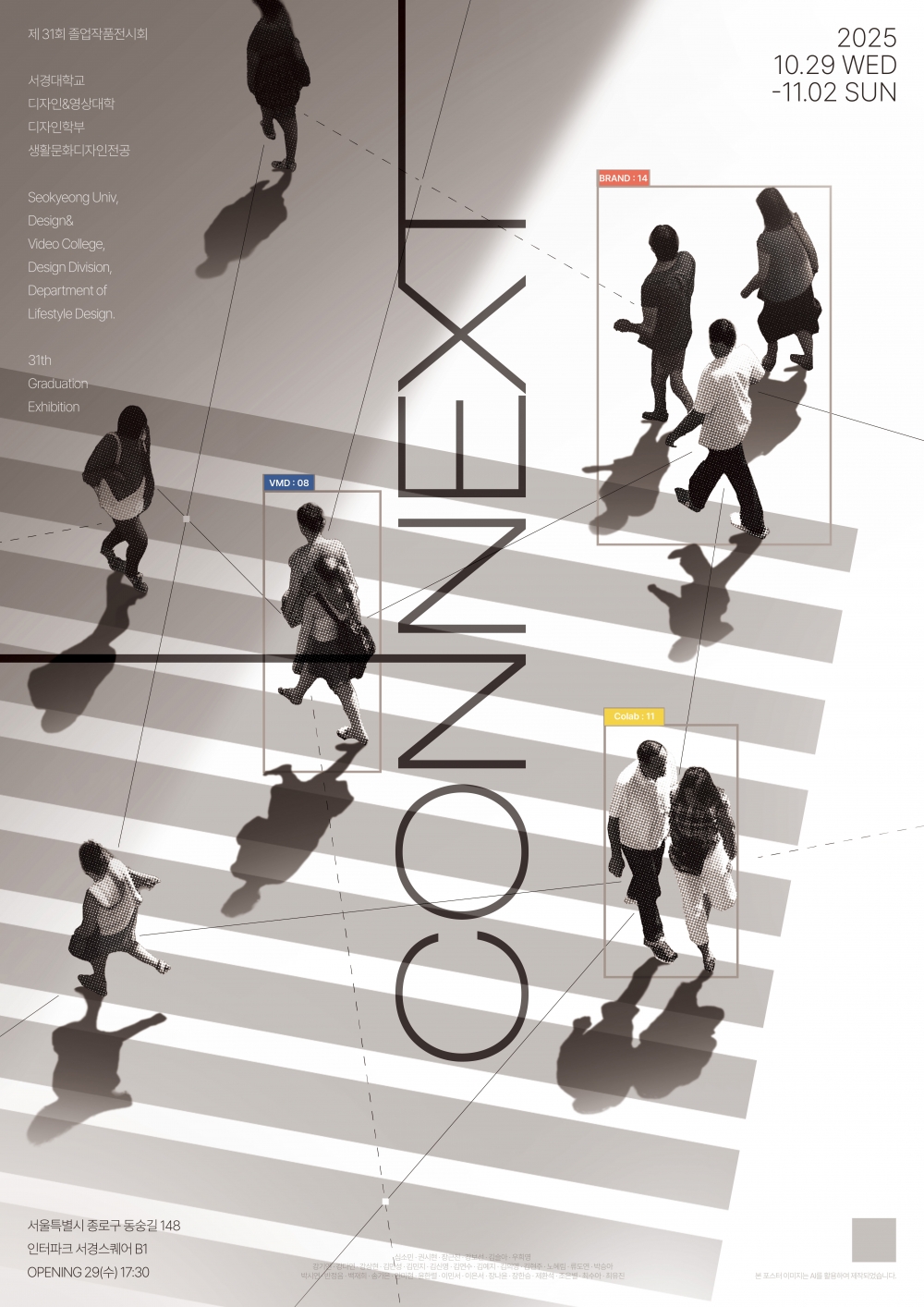 서경대학교 디자인학부 생활문화디자인전공은 10월 29일(수)부터 11월 2일(일)까지 5일간, 서울시 종로구 대학로 서경대학교 공연예술센터 지하 1층 SKON 갤러리에서 ‘제31회 2025 졸업전시회’를 개최한다. 전시는 매일 오전 10시부터 오후 6시까지 진행되며, 오프닝 행사는 10월 29일(수) 오후 5시 30분에 열릴 예정이다.