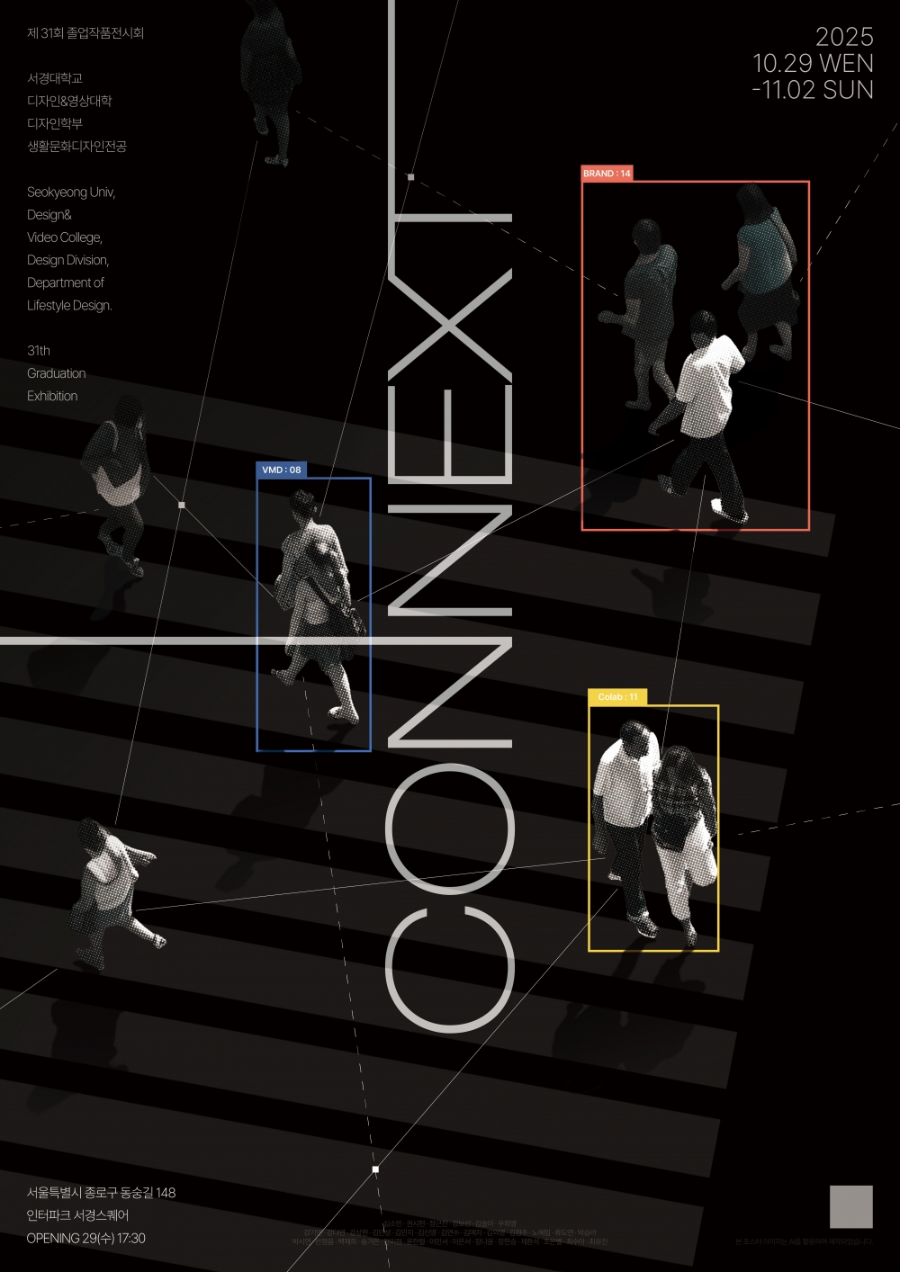 이번 졸업전시의 주제는 ‘CONNEXT’로, ‘연결’을 의미하는 CONNECT와 ‘다음’을 뜻하는 NEXT를 결합한 단어이다. 이는 함께하는 공통의 경험과 각자의 다양한 경험이 서로 연결되어 새로운 성장을 이루고, 이를 바탕으로 미래로 나아가겠다는 젊은 디자이너들의 도전적 메시지를 담고 있다.