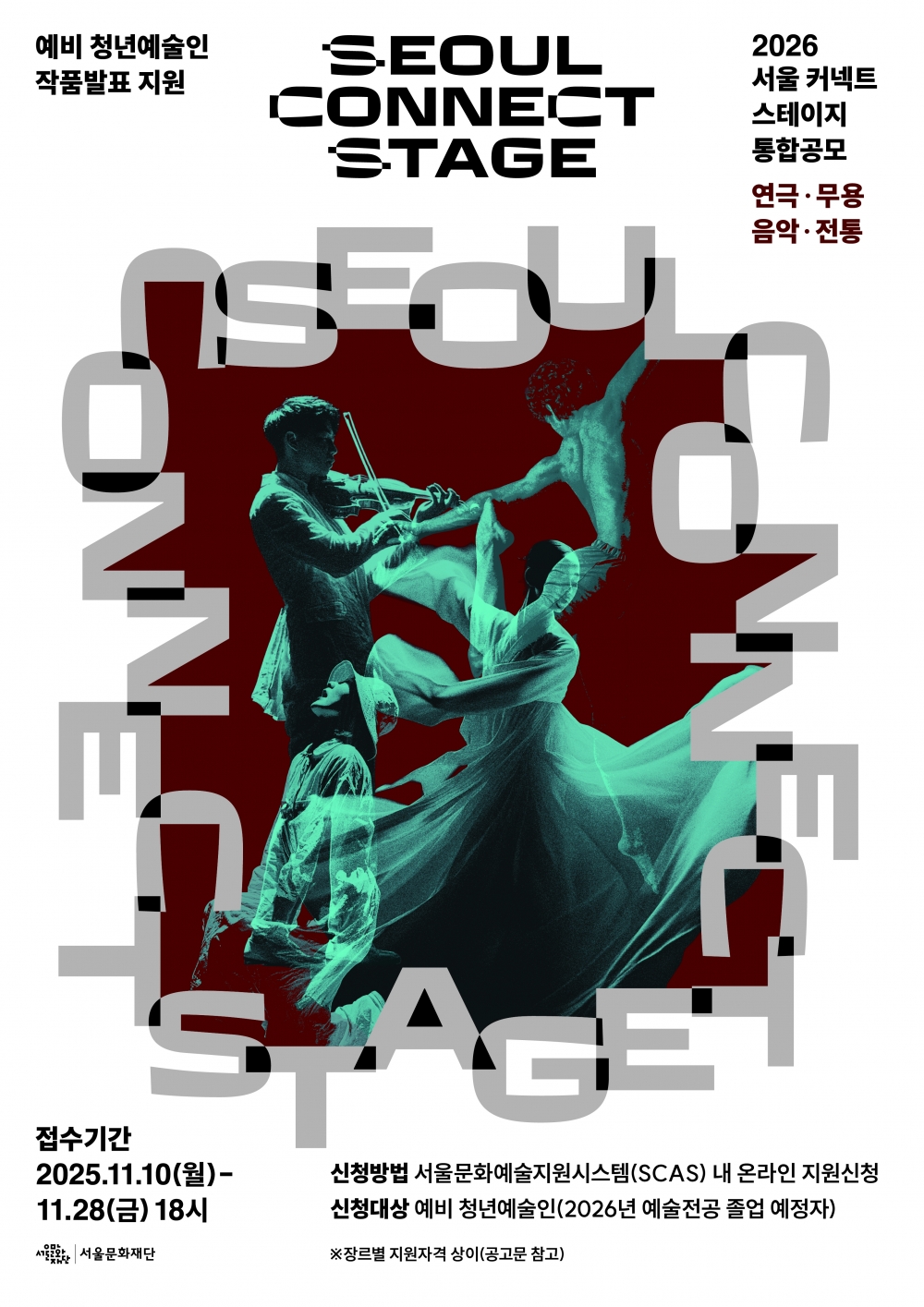 서울문화재단 송형종 대표이사는 “서울 커넥트 스테이지는 창작을 돕는 손에서 출발해 청년예술가의 가능성을 여는 무대까지 나아가는 사업”이라며, “앞으로도 서울문화재단은 청년예술가들이 각자의 예술언어로 세상과 만나는 무대를 지속할 수 있도록 예술가의 성장 여정에 동행하는 든든한 동반자가 되겠다”라고 밝혔다. (문의: https://www.scas.kr/)