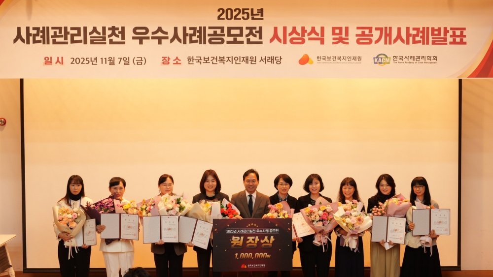 한국보건복지인재원(원장 직무대행 배남영, 이하 ‘인재원’)은 한국사례관리학회(학회장 백은령, 이하 ‘학회’)와 공동으로 지난 7일(금) 인재원 서래당에서 '2025년 사례관리실천 우수사례 공모전 시상식 및 공개사례발표·추계학술대회'를 개최했다고 밝혔다.