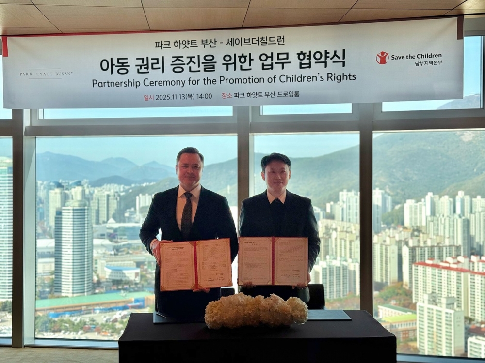 국제아동권리 NGO 세이브더칠드런 남부지역본부(본부장 노성훈)는 지난 13일 파크 하얏트 부산(로만 칼다쇼브 총지배인)과 부산지역 아동의 권익보호 강화, 지역사회 내 지속 가능한 변화조성을 위한 아동권리 증진 및 복지향상을 위한 업무협약(MOU)을 체결했다고 밝혔다.
