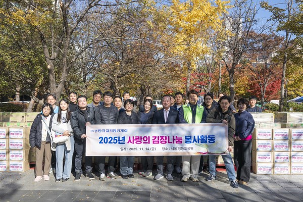 한국교직원공제회(이사장 정갑윤, 이하 공제회)는 지난 14일 오전, 영등포공원에서 사랑의 김장나눔 봉사활동을 실시했다고 밝혔다. 공제회 임직원으로 구성된 참나눔봉사단은 이날 김치를 직접 담그고 포장하며 지역사회 나눔에 적극 동참했다.