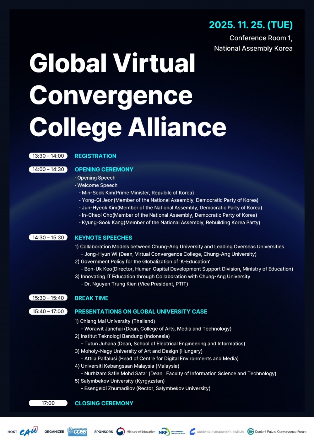 위정현 중앙대 가상융합대학 학장은 “한국은 IT와 콘텐츠 분야에서 강한 경쟁력을 보유하고 있으며, 이에 기반한 융합 교육은 글로벌 대학의 관심이 가장 높은 분야”라며“실감미디어, AI 기반 K-교육 모델을 체계적으로 확산해 한국이 미래 고등교육 혁신을 주도할 수 있도록 추진하겠다”고 말했다.